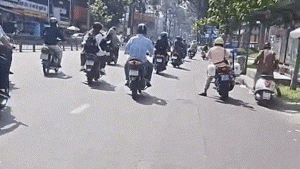 Đoạn clip không thể hiện diễn biến lúc đầu, chỉ thấy một thanh niên điều khiển xe tay ga màu trắng chạy lên vỉa hè nhằm tránh sự truy đuổi của một CSGT lái mô tô đặc chủng.