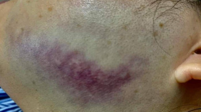 Đoạn clip người phụ nữ bị tấn công và hình ảnh khuôn mặt nạn nhân bầm tím vì bị đá lan truyền trên mạng xã hội khiến cộng đồng mạng vô cùng phẫn nộ.