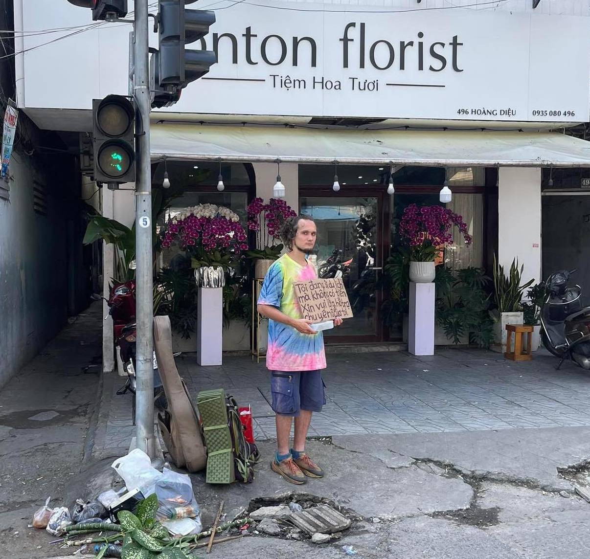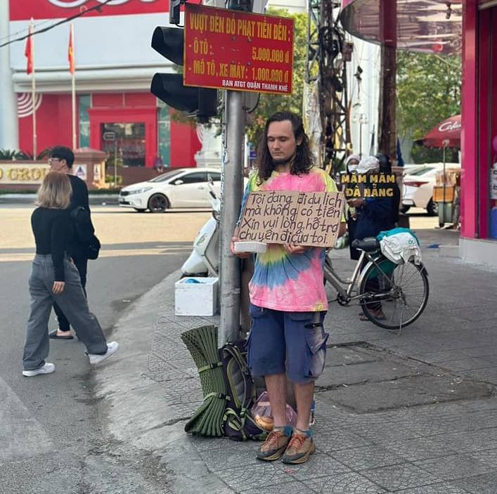 Ngày 3/3, mạng xã hội lan truyền hiện hình ảnh một người nước ngoài đứng tại đường Hoàng Diệu (Đà Nẵng) trên tay cầm tấm biển ghi dòng chữ “Tôi đang đi du lịch mà không có tiền. Xin vui lòng hỗ trợ chuyến đi của tôi”.