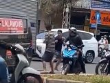 Hình ảnh trong clip cho thấy nam thanh niên có hành vi hung hăng, vừa chửi bới vừa dùng bạo lực để giải quyết mâu thuẫn.
