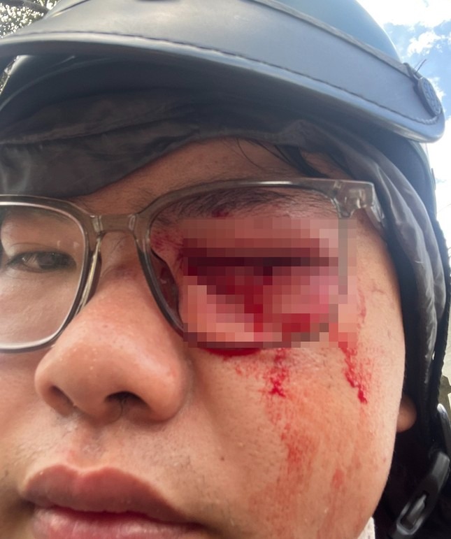 Gần đến ngã tư Bình Thái, một chiến sĩ CSGT ra hiệu lệnh dừng xe. Anh N lách vào trong để chạy tiếp thì bị một chiến sĩ CSGT từ trong chốt đi ra, dùng gậy sọc đen, trắng “đánh thẳng vào mắt” trái.