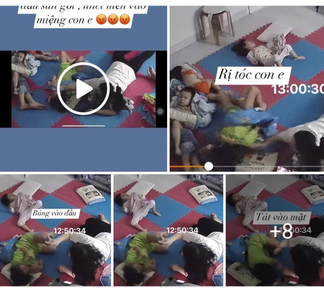 Để chứng minh sự việc, phụ huynh đã đính kèm thêm nhiều video quay lại cảnh cô giáo dùng tay tác động lên đầu trẻ, lấy chăn (mền) đẩy vào miệng cháu…