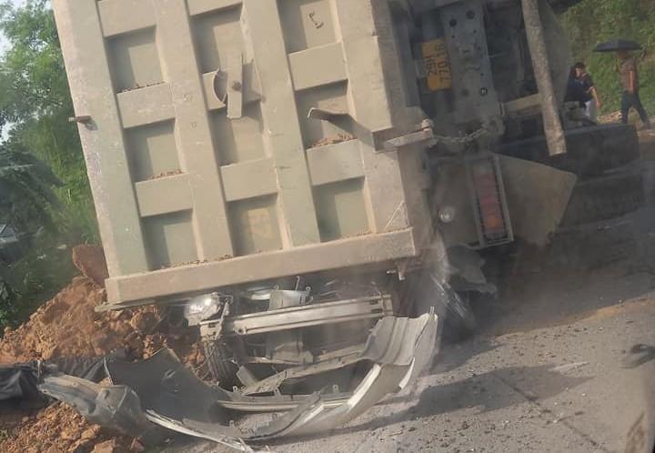 Thông tin từ chi cục Quản lý đường bộ I.6 cho biết, chiếc xe ben di chuyển theo hướng Thanh Hóa - Hà Nội bị lật, đè trúng ô tô 4 chỗ mang biển số 30A-615.85 đang lưu thông theo hướng ngược lại.