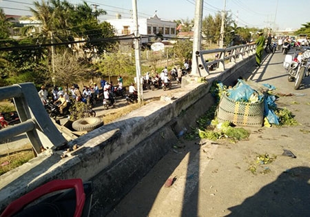 "Một người chở rau chết tại chỗ, người còn lại tử vong khi đưa đi cấp cứu. Xe ben sau đó đã lao qua lan can cầu và rơi xuống mé sông. Tài xế kịp phóng ra ngoài, đu trên lan can một lúc mới có người cứu giúp", nhân chứng tên Hưng kể.
