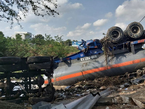 Tài xế bị thương nhẹ, cạy cửa bung ra ngoài. Số hóa chất trên thùng xe bồn đổ xuống ao. Khu vực trên gần khu vực có người dân sinh sống nên lực lượng công an đã khoanh vùng, không để hóa chất lan ra ngoài.