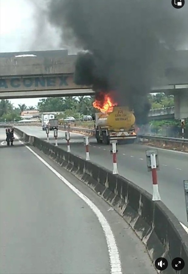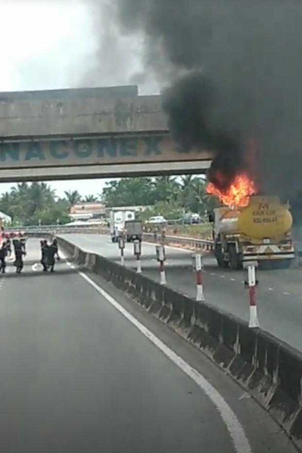 Chiếc xe bồn chở nhiên liệu đang di chuyển trên cao tốc TPHCM - Trung Lương thì bất ngờ bốc cháy . Tài xế đã điều khiển xuống đường dẫn thành phố Tân An, Long An để cầu cứu .