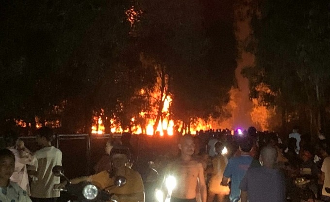 Sau cú va chạm, xe bồn chở xăng dầu bốc cháy dữ dội, cả 2 phương tiện hư hỏng nặng, tài xế xe tải tử vong tại chỗ, tài xế xe bồn bị thương nặng được đưa đi bệnh viện cấp cứu.