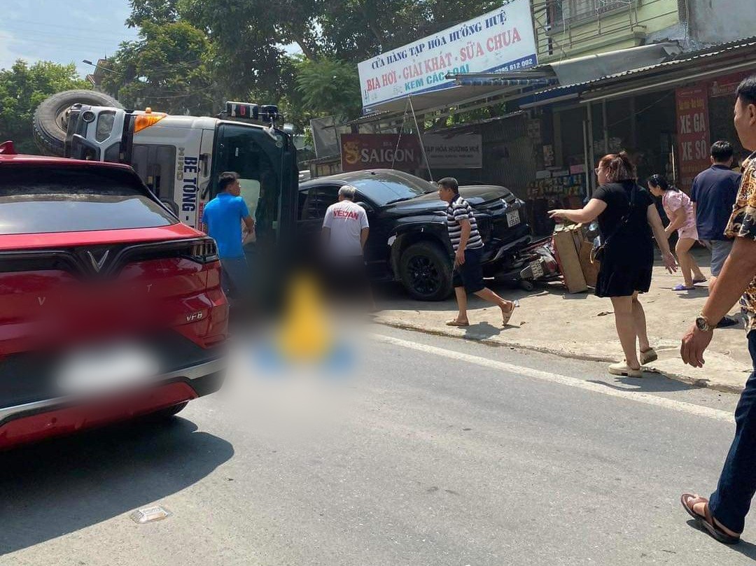 Vụ va chạm khiến xe bán tải lao lên phía trước, tiếp tục va chạm với một xe máy khác mang biển kiểm soát 24B2-311.XX.