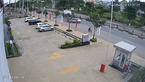 Theo những gì được một chiếc camera gần đó ghi lại, khoảng lúc 13h37' trưa ngày hôm nay (14/8), một chiếc xe bồn đang chạy trên đường thì bất ngờ mất lái rồi tông vào chiếc ô tô con di chuyển cùng chiều.