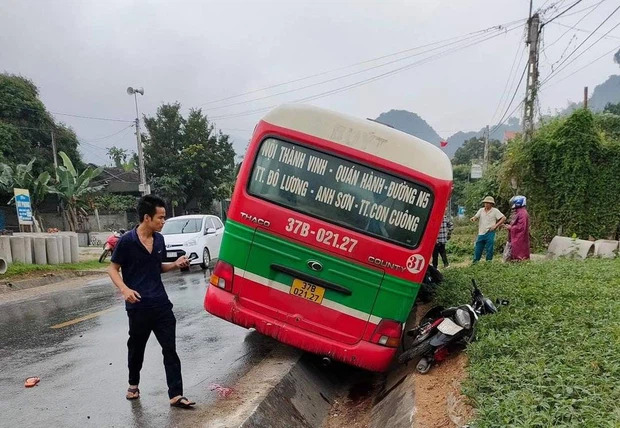 Khoảng 14h ngày 5/4, chiếc xe buýt của nhà xe Khanh Quỳnh (chạy tuyến TP Vinh - thị trấn Con Cuông, tỉnh Nghệ An) đang chạy trên quốc lộ 7 thì va chạm với một xe máy cùng chiều ở địa điểm xóm 1, xã Đỉnh Sơn, huyện Anh Sơn.