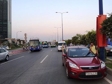 Chiếc xe buýt chở theo hàng chục sinh viên đang lưu thông trên xa lộ Hà Nội bất ngờ mất lái tông liên tiếp vào hai ô tô phía trước khiến hành khách một phen hoảng hồn.