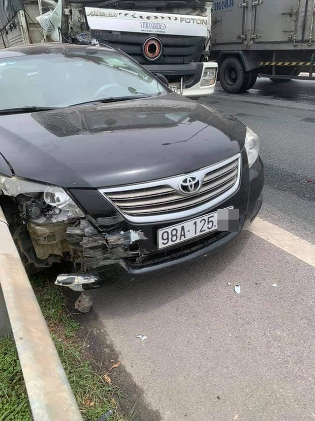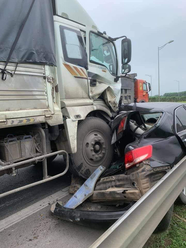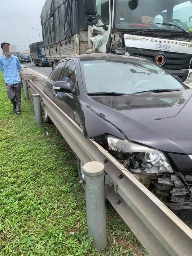 Cú đâm mạnh khiến 2 phương tiện đều hư hỏng nặng, trong đó phần đầu và đuôi Camry bị đâm biến dạng. May mắn không có thiệt hại về người, nhưng giao thông theo hướng đi Hà Nội bị ùn tắc kéo dài.