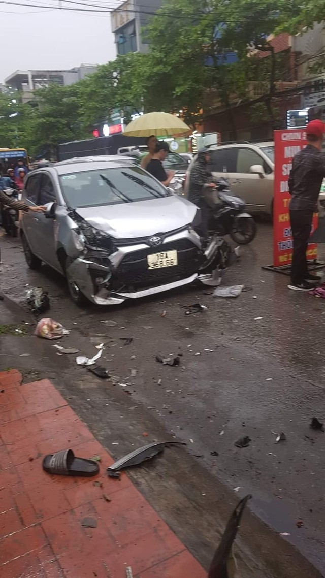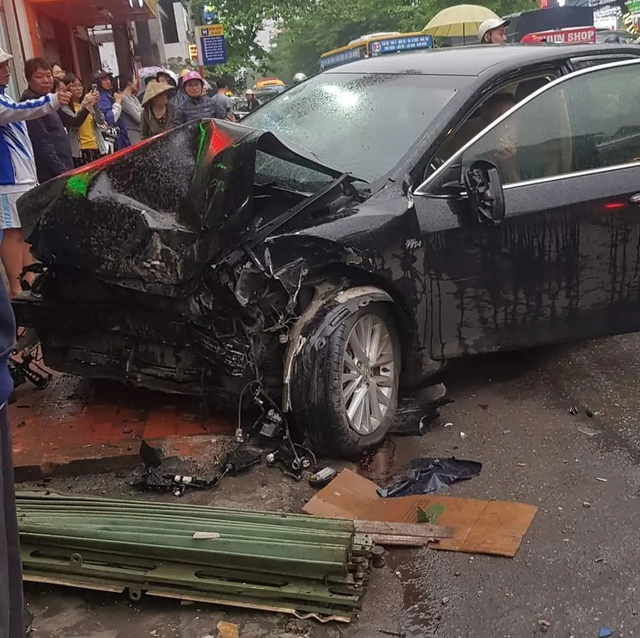 Sau cú tông, ô tô không có dấu hiệu giảm tốc độ, va chạm tiếp với ô tô hiệu Vinfast, xe máy hiệu Honda, ô tô Toyota. Ô tô "điên" chỉ dừng lại sau khi lao vào một nhà dân ven đường.