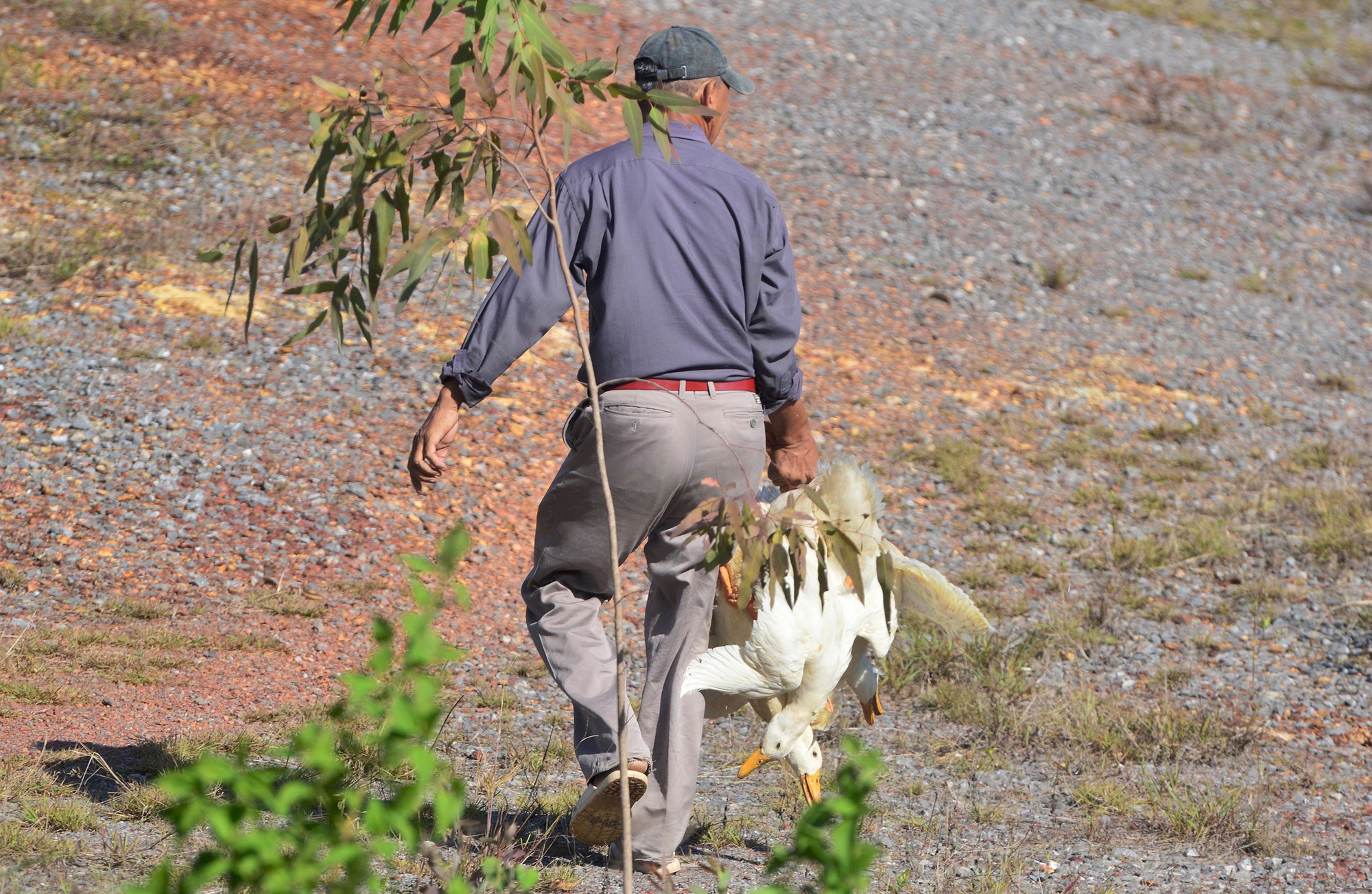 Một số người dân chứng kiến sự việc cũng chung tay tìm bắt số vịt còn sống, gom lại giúp người gặp nạn.