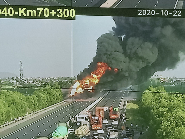 Vào khoảng 15h25 chiều 22/10, tại Km 70+600 hướng Hải Phòng - Hà Nội thuộc địa phận xã Vĩnh Lập, huyện Thanh Hà, tỉnh Hải Dương, một xe bồn chở dầu bất ngờ bốc cháy dữ dội tại làn dừng khẩn cấp.
