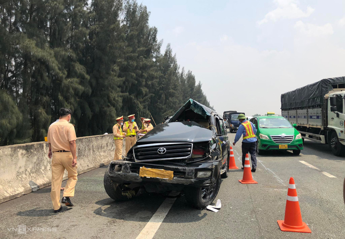 Tại hiện trường, ôtô nằm lật ngang, đầu xe móp méo, biến dạng, hướng vào dải phân cách, gần đó có nhiều mảnh vỡ. Vị trí xe lật cách điểm va chạm với dải phân cách khoảng 10 m. Tai nạn khiến cao tốc kẹt xe kéo dài. Đến 11h, ôtô được dời khỏi hiện trường.