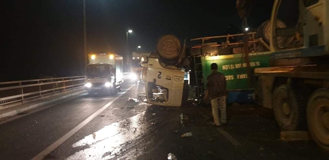 Vụ việc xảy ra vào khoảng 2h30 ngày 13/11, chiếc xe ô tô chở rác BKS 29C-759.20 của Công ty Cổ phần Công nghệ cao Minh Quân (chưa xác định được người điều khiển) khi đang di chuyển trên cầu Nhật Tân (Hà Nội) theo hướng từ nội thành sang Đông Anh thì bất ngờ bị lật.