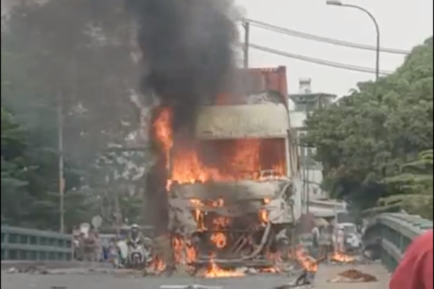 15/03/2024 02:07Xe container bốc cháy ngùn ngụt trên cầu ở TPHCM