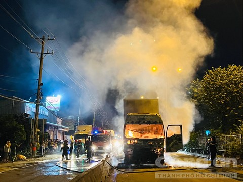 Khi qua vừa khỏi khu chế xuất Linh Trung, thuộc phường Linh Trung, TP Thủ Đức thì bất ngờ xe bốc cháy ở phần cabin.