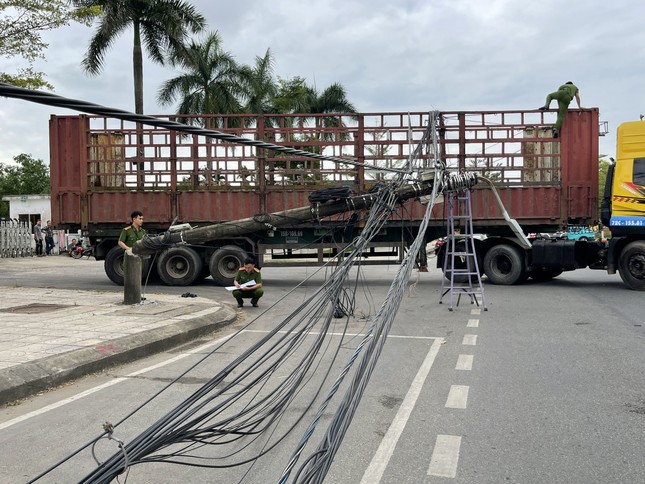 Ngày 12/3, UBND phường Trương Quang Trọng (TP. Quảng Ngãi, tỉnh Quảng Ngãi) cho biết, trên địa bàn vừa xảy ra sự việc hi hữu, xe container kéo theo rơ moóc đã vướng vào đường dây điện làm đổ, gãy 4 trụ điện hạ thế khiến khoảng 300 hộ dân, đơn vị kinh doanh trên địa bàn phường bị mất điện.