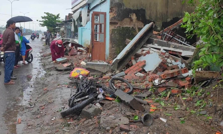 Anh Trần Minh Tuấn, chủ ngôi nhà bị tông sập, kể: "Bốn người đang nằm trong phòng ngủ thì nghe tiếng rầm rầm rung lắc, giật mình chạy ra thấy ngôi nhà đã đổ nát phía trước".