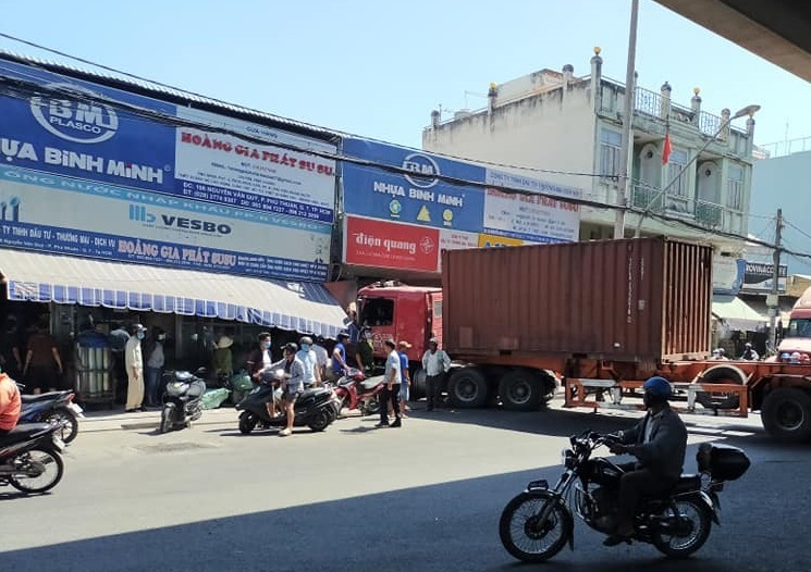 Vào thời điểm trên, xe container BKS 51C- 395.09 kéo theo rơ moóc loại 40 feet lưu thông trên đường Nguyễn Văn Quỳ hướng từ cầu Phú Mỹ về đại lộ Nguyễn Văn Linh.