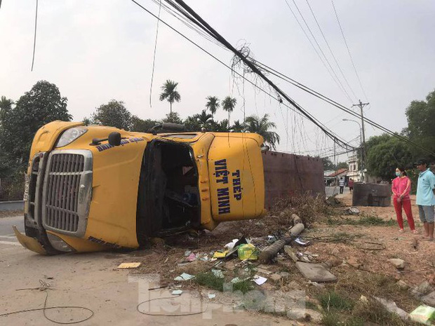 Khi xe lưu thông đến khu phố Thạnh Phú, phường An Thạnh, TP Thuận An, tài xế cho xe ôm cua khiến xe lao về phía trước tông gãy trụ điện và trụ đèn chiếu sáng rồi lật ngang đường. Cuộn thép trên xe bị văng ra khỏi xe, rơi vào bãi đất trống bên đường.