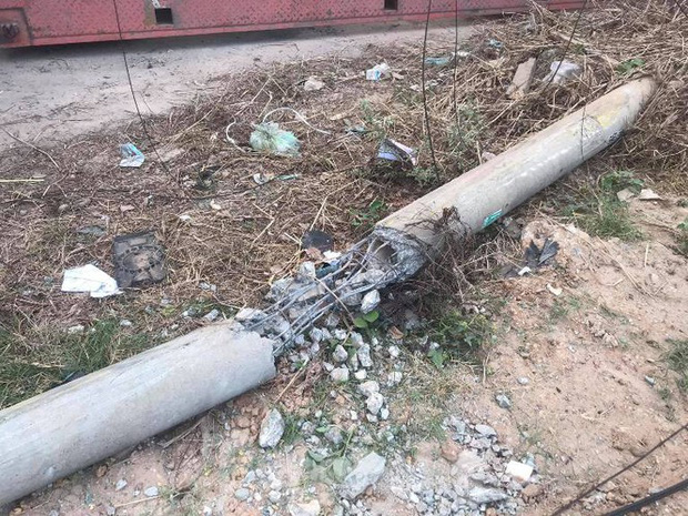 Tại hiện trường, trụ điện và trụ đèn chiếu sáng bị tông gãy ảnh hưởng đến điện dân sinh của một số hộ dân bên cạnh. Đường dây cáp viễn thông cũng bị ảnh hưởng và được nhân viên của Viettel đến khắc phục sự cố.