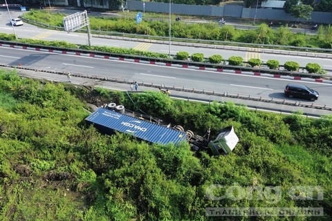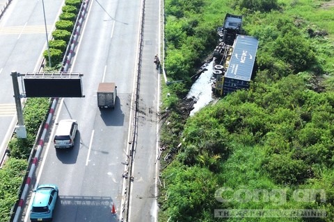 Khoảng 6 giờ 30, nam tài xế khoảng 40 tuổi điều khiển xe container loại 40 feet chạy trên đường dẫn cao tốc TPHCM - Long Thành - Dầu Giây, theo hướng TPHCM đi Đồng Nai.