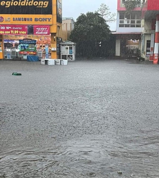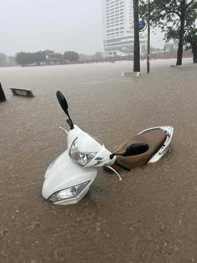 Trên các diễn đàn mạng xã hội, hình ảnh chụp tại các điểm bị ngập nặng, thu hút nhiều sự quan tâm. Cơn mưa xối xả khiến các phương tiện bị chết máy, người dân phải bì bõm dắt bộ dưới dòng nước lũ.