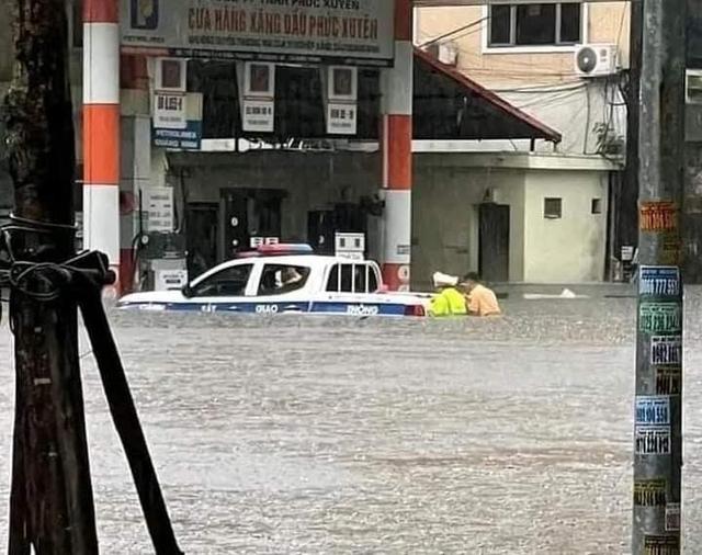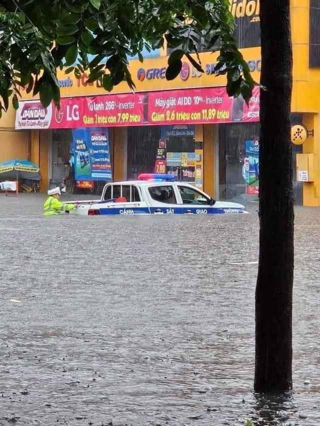 Trong đó, một đoạn clip ghi lại cảnh tượng hy hữu cho thấy, xe của CSGT Quảng Ninh bị chết máy trên đường đi tới các điểm ngập úng để phân luồng, đảm bảo giao thông.