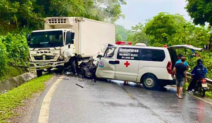 Thời điểm trên, ô tô tải BKS 29H-304.9x do tài xế Nguyễn Đăng T (SN 1984 trú tại Hoà Phú, Ứng Hoà, Hà Nội) điều khiển hướng Bắc Kạn đi Hà Nội đã va chạm với xe ô tô cứu thương BKS 30G-908.4x do anh Lã Văn H (SN 1992 trú tại xóm 8, Xuân Hồng, Xuân Trường, Nam Định) điều khiển đi hướng ngược lại.