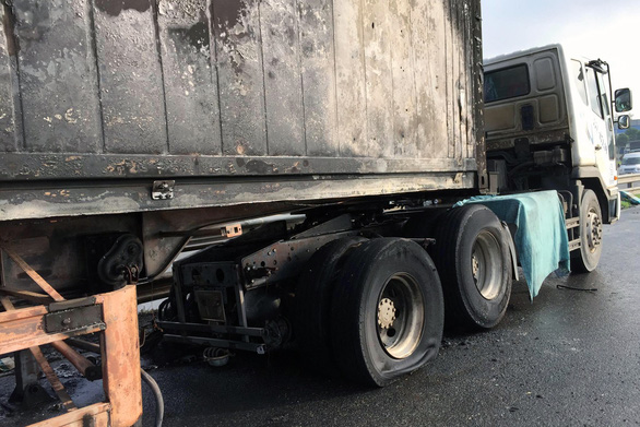 Khi vừa qua khỏi cầu Đồng Nai đoàn gần trạm thu phí, gầm của rơ-moóc bất ngờ bốc cháy tỏa khói nghi ngút. Phát hiện sự việc, tài xế bình tĩnh điều khiển xe áp sát dải phân cách, rồi bung cửa chạy ra ngoài.