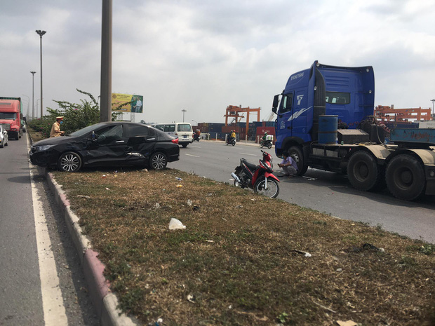 Tại hiện trường, tài xế xe đầu kéo cho biết do ô tô 4 chỗ chuyển làn đường đột ngột từ phải qua trái nên anh không kịp xử lý, dẫn đến xảy tai nạn.