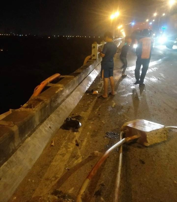Từ hình ảnh hiện trường, có thể thấy phần trụ bê tông và lan can bằng sắt ở phía trên đã bị húc đổ. Tuy nhiên, phần lan can kết cấu bê tông và thép phía dưới, cao khoảng 50cm vẫn còn nguyên.