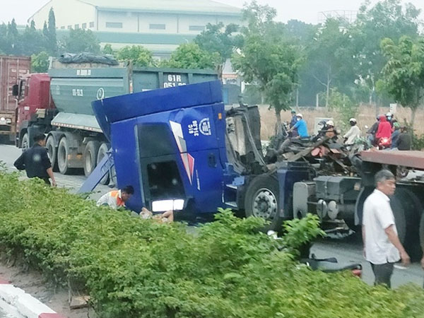 Ghi nhận tại hiện trường, cabin xe đầu kéo bể nát, giao thông qua khu vực ùn ứ. Cơ quan chức năng TP Thủ Dầu Một đã đến xử lý hiện trường, điều tra nguyên nhân tai nạn.