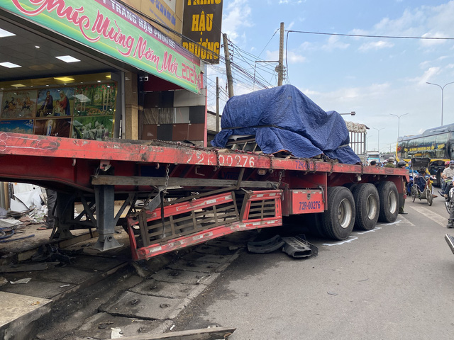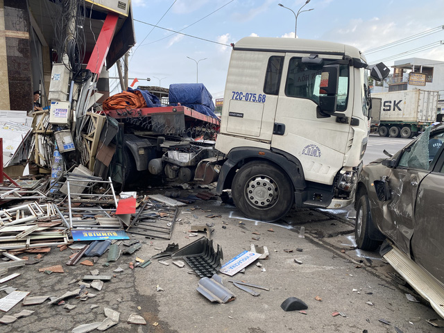 Đến xã Phước Thái, huyện Long Thành, xe này bất ngờ tông mạnh vào ôtô tải và xe bán tải đậu bên phải đường. Tiếp tục lao về trước, xe đầu kéo đụng hai xe máy rồi cuốn hai phụ nữ cầm lái vào gầm.