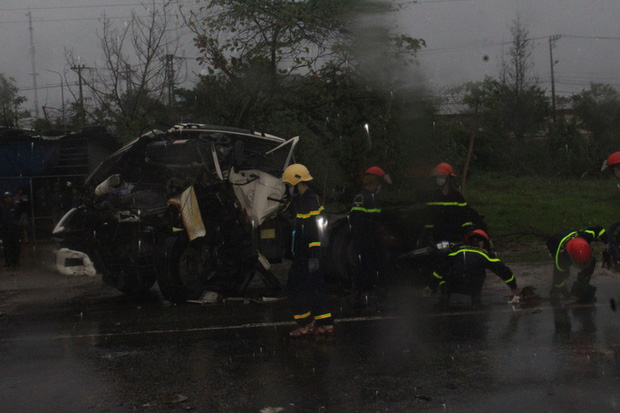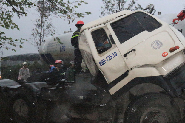 Cú va chạm mạnh khiến đầu xe đầu kéo bị biến dạng, tài xế kẹt trong cabin. Khi người xung quanh phá cửa đưa ra ngoài thì tài xế trên xe đã tử vong.