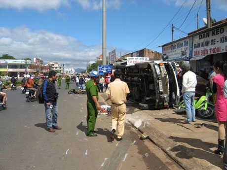 Xe khách mang biển số 81M-3223 lưu thông theo hướng Đăk Lăk - Pleiku, khi đến đoạn đường này đã lao lên vỉa hè gây ra vụ tai nạn, trên xe lúc đó có 3 người. Vụ tai nạn khiến 7 chiếc xe máy hư hỏng, nằm rải rác.