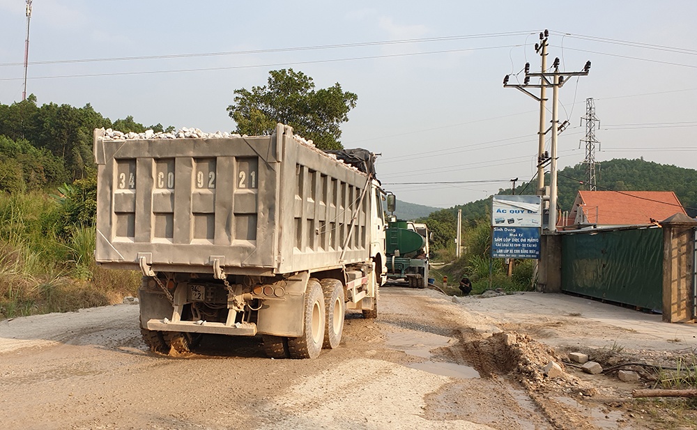 Loạt xe chở đá quá tải liên tục quần thảo trên TL326 (chạy song song với cao tốc Hạ Long - Vân Đồn) khiến cho mặt đường bị phá hỏng tạo ra nhiều ổ voi, ổ gà. Thậm chí, một đoạn đường dài gần 500m qua thôn Đồng Cao, xã Thống Nhất đã bị cày xới nát bét khiến người dân đi lại khó khăn.