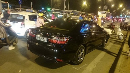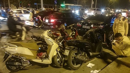 Theo một số người chứng kiến, xe ô tô đâm vào 6 xe máy và một xe đạp điện. Hậu quả vụ tai nạn liên hoàn khiến ba người bị thương phải đưa đi cấp cứu.