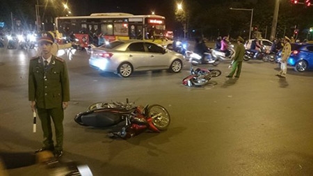 Theo đó, khi đang lưu thông theo hướng Lê Duẩn đi Giải Phóng, xe ô tô BKS 37A-261.43 bất ngờ đâm vào hàng loạt xe máy đi trên đường.