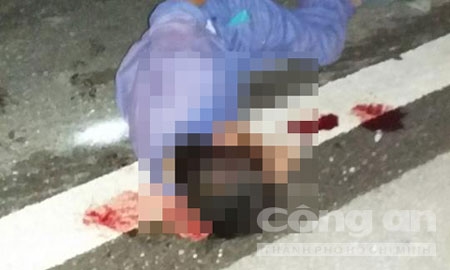 Nam thanh niên đã bị xe 4 chỗ tông trúng văng ra xa khiến nạn nhân đập đầu xuống đường |