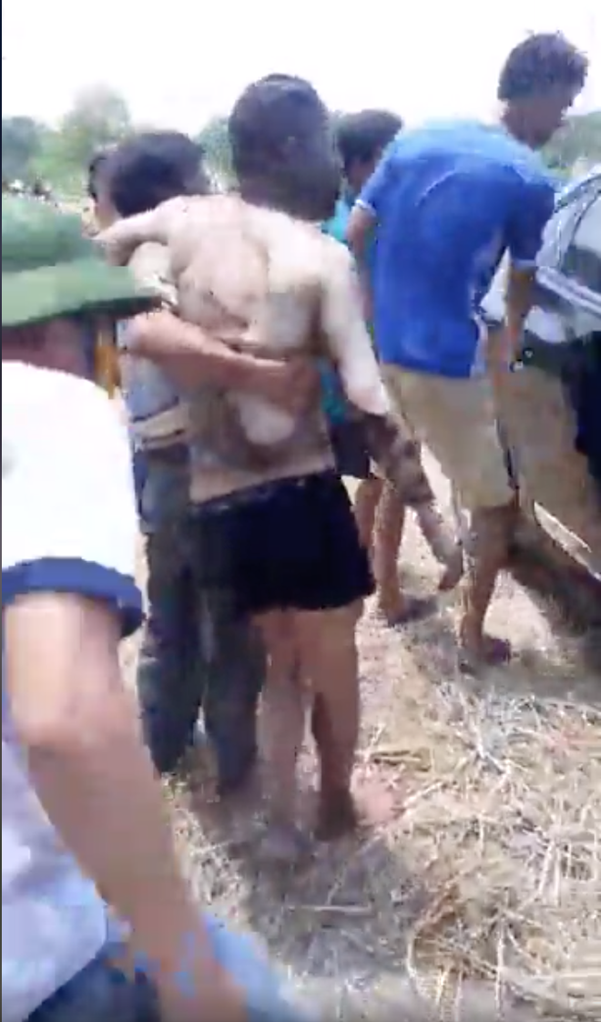 Đám cháy khiến chủ xe bị kẹt cửa không thoát được ra ngoài. Phát hiện vụ cháy, người dân xung quanh lập tức chạy đến cạy cửa cứu tài xế ra ngoài và vẫy xe người đi đường để đưa đi cấp cứu.