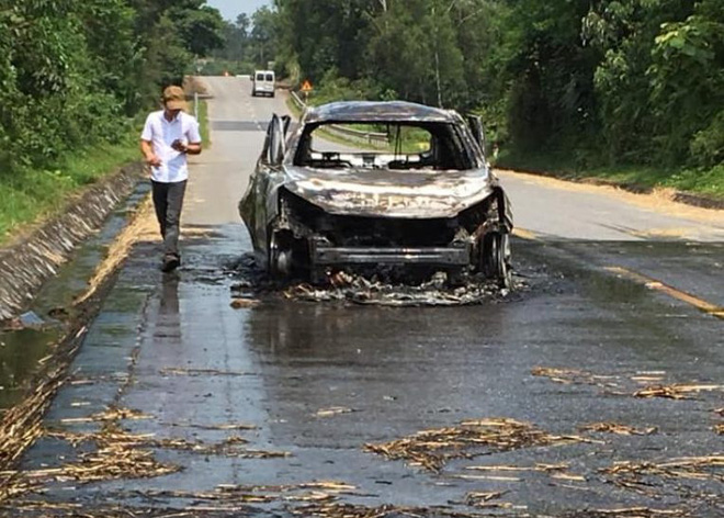 Sau vụ cháy xe, cơ quan công an đã có mặt tại hiện trường điều tra làm rõ nguyên nhân vụ việc.