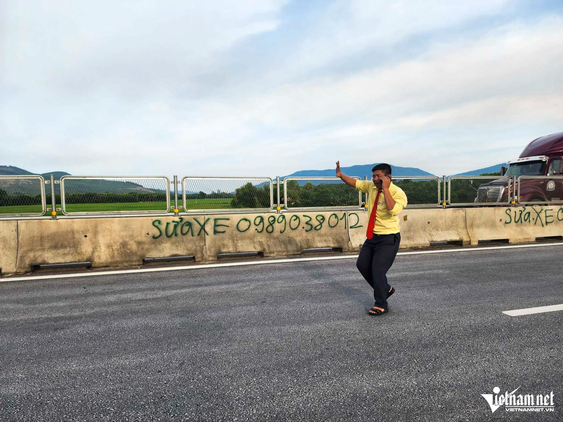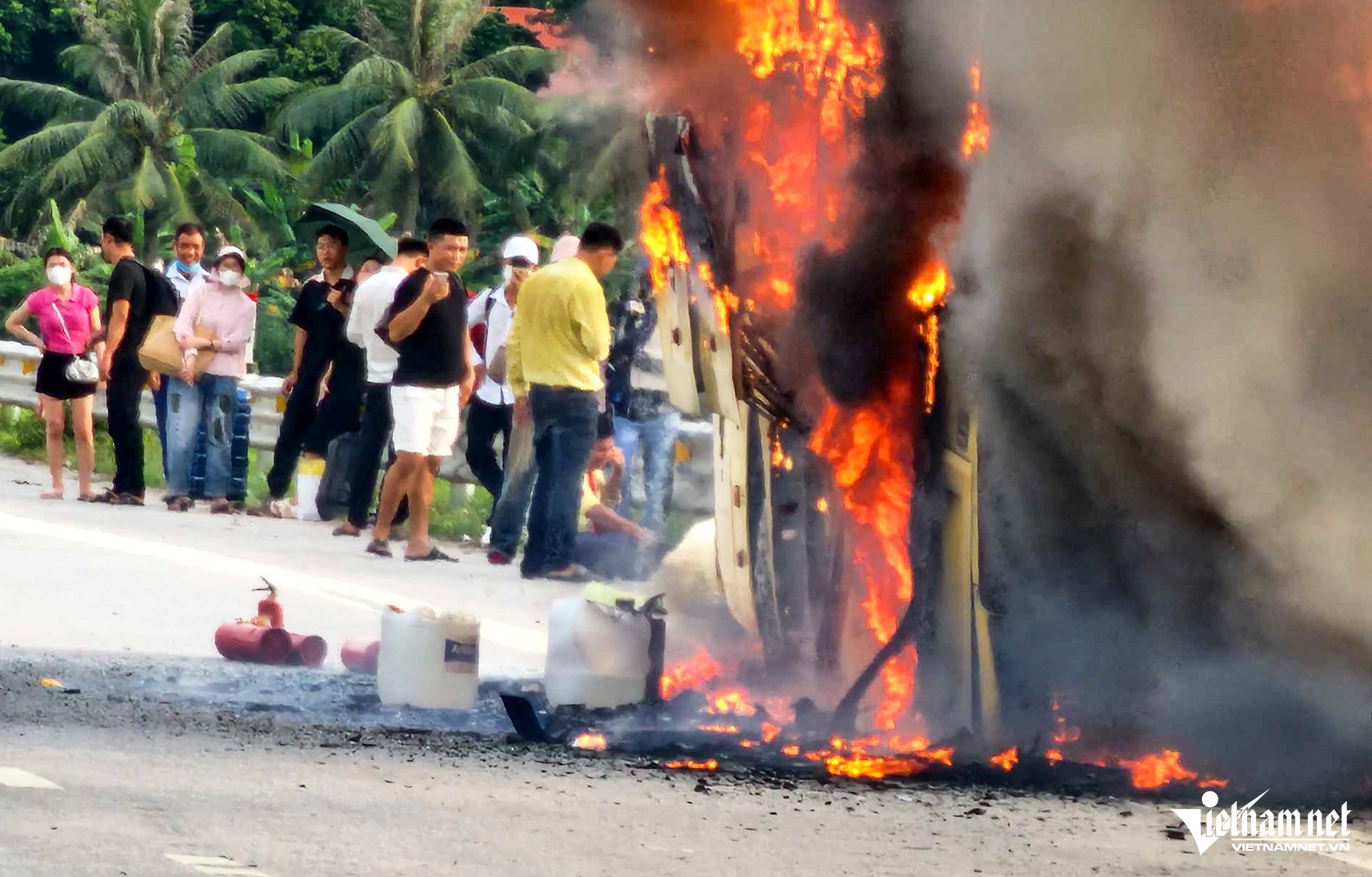 Lửa kèm theo tiếng nổ lớn đã khiến cho các phương tiện lưu thông cùng chiều phải dừng lại, cách vụ cháy khoảng 700m để giữ an toàn.