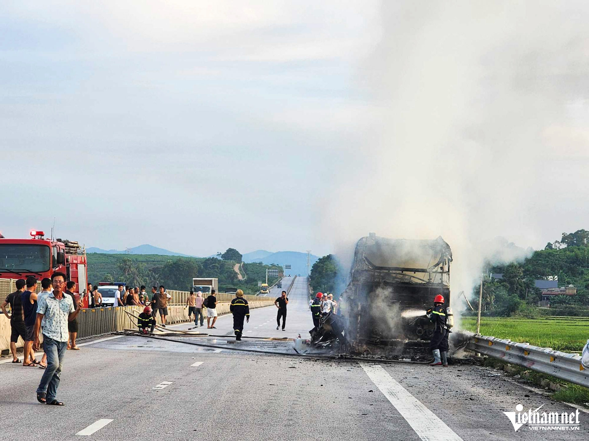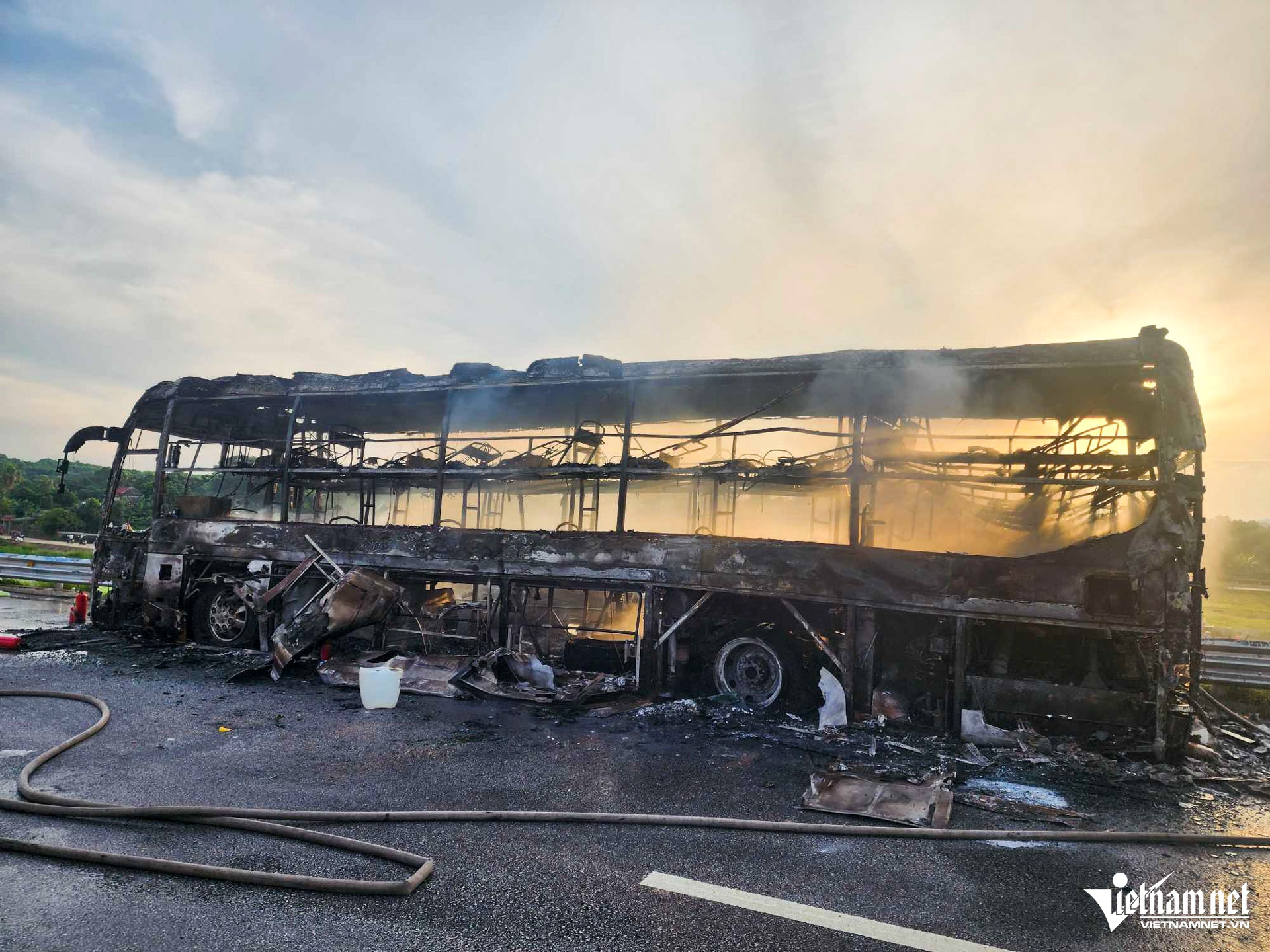 Giao thông trên tuyến vẫn tạm thời bị phong toả, cơ quan chức năng tỉnh Thanh Hoá đang tổ chức khám nghiệm hiện trường để điều tra nguyên nhân hỏa hoạn.