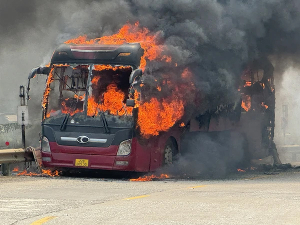 Phát hiện cháy, tài xế xe khách đã nhanh chóng hướng dẫn hành khách rời khỏi xe và tiến hành dập đám cháy nhưng không thành công.