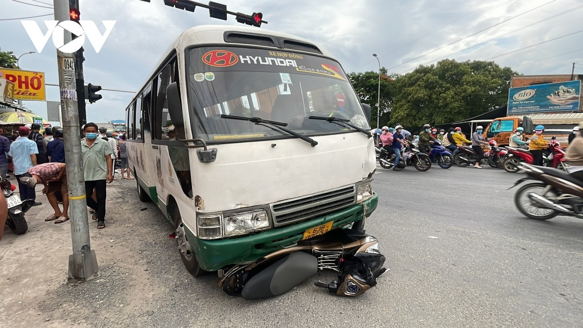Lúc 17 giờ chiều 6/6, ô tô khách 35 chỗ biển số 63B.00063 lưu thông theo hướng TP.HCM đi miền Tây. Chiếc xe khách này vừa đổ dốc cầu Bến Lức khoảng hơn 100 m khi đến gần ngã tư có đèn tín hiệu giao thông thì mất kiểm soát. Phương tiện lao thẳng vào gần 30 xe máy đang dừng chờ đèn đỏ.