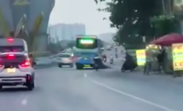 Hậu quả, một chiếc xe máy bị va quệt mạnh đã ngã lăn ra đường, người văng xa vài mét. Lúc này trên đường có nhiều phương tiện khác đang tham gia giao thông.